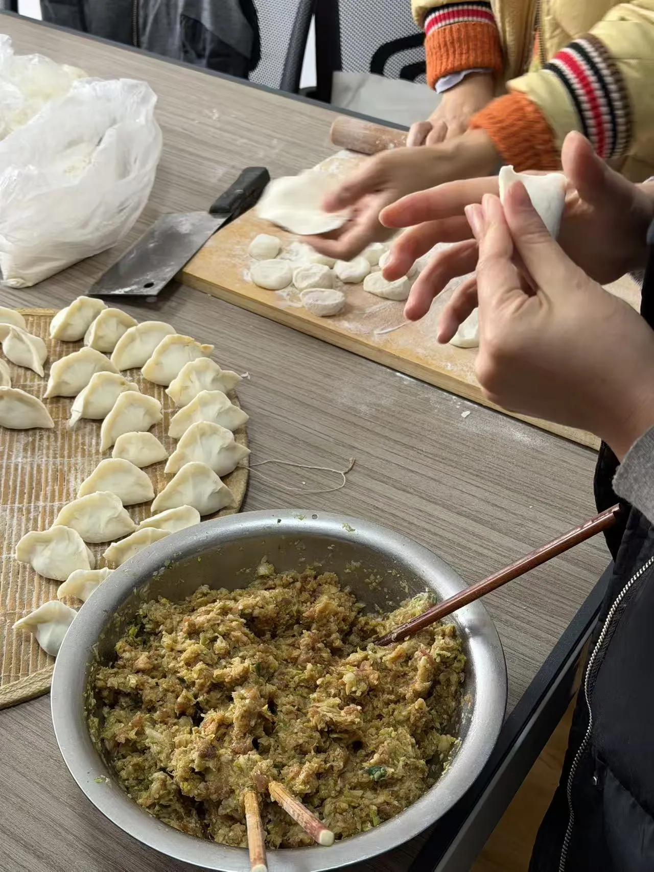 Arrangementet bød på medarbejdere fra forskellige afdelinger, der kom sammen for at forberede, pakke ind og nyde hjemmelavede dumplings.